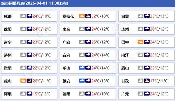 四川各城市天气预报。(来源:中国天气网)