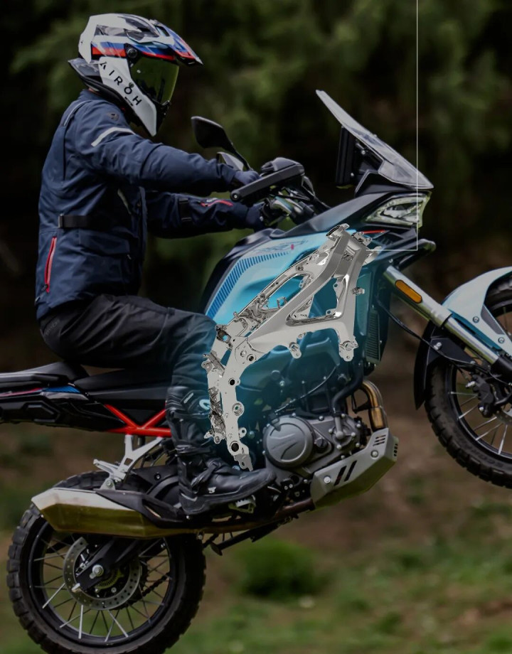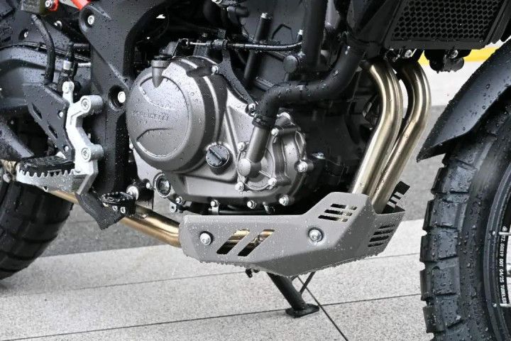 如果说原创的设计是打动消费者的第一印象,那么T352X确实已经做到了这一点。虽然说是一款ADV车型,但是从车头的设计来看确实更像是一款极具运动化设计的街车,所以在车头以及大灯的辨识度上非常出色。此外,原厂护杠、手把护罩、辐条轮毂、铝合金底护板等元素的加入也让它拥有更为硬派的风格。