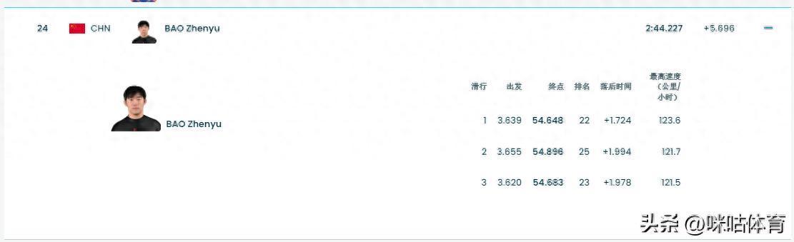 北京时间2月9日,米兰冬奥会男子单人雪橇项目第三轮比赛,中国选手鲍振宇在前两轮比赛结束后名列第24位,第三轮滑行中他滑出了54秒683,三轮结束后总成绩2分44秒227,位列第24名,无缘最终的第四轮滑行。第24名也追平了中国男子雪橇项目在冬奥会上的最好成绩。