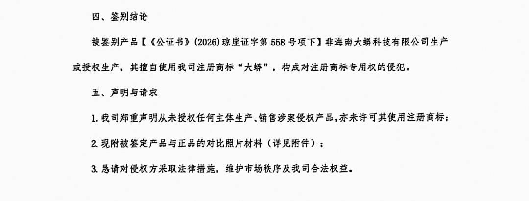 海南大蟒科技有限公司负责人告诉极目新闻记者,网店发货的快递流程记录显示,假货是从湖南寄出的,但他们暂时无法确定假货具体的发货地址。目前,他们已保存相关证据,已向多地的市场监管部门以及平台反映了问题。