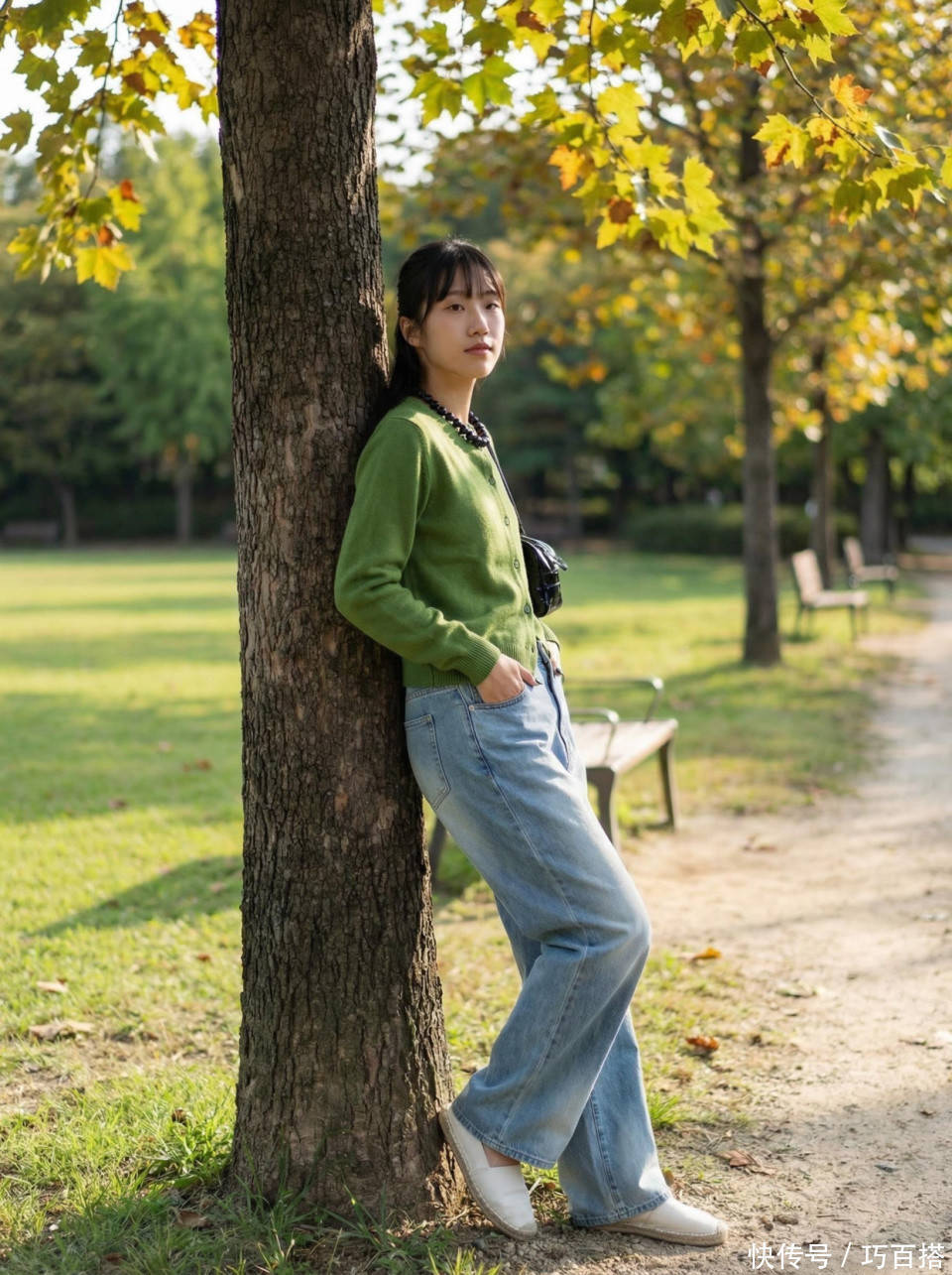 二是可以像博主一样选择同为基础款牛仔裤,简单经典,适合通勤穿也适合度假穿,春天照搬照抄博主身上这套造型,轻易不会踩雷,单品材质、颜色、都非常适合春天。